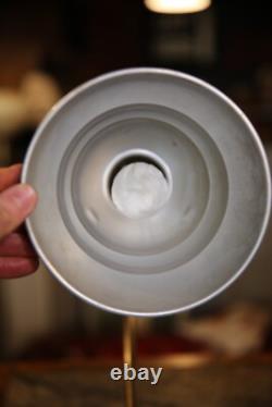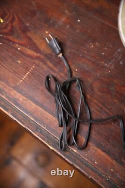 ONE HAS A SLIGHTLY DIFFERNT SHADE THAN THE OTHER WITH A WIRE CAGE COVER AND THE OTHER DOES NOT. ONE OF THE CORDS IS BRITTLE AND NEEDS REPLACED ADN THE OTHER IS FINE IN WORKING CONDITION. MEASURES APPROX: 16" TALL WITH AN 8" DIAMETER BASE AND 7 DIAMETER SHADE. PLEASE ASK IF YOU HAVE ANY QUESTIONS THANK YOU!