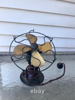 The antique/vintage mini 6 electric fan by General Electric is a charming collectible piece with a black brass finish and 4 blades. This single-speed fan, from the General Electric Series G, stands at 10 inches tall and is powered electrically. Perfect for adding a touch of retro style to any room, this vintage fan is both functional and decorative, making it a unique addition to any collection of small appliances or kitchen decor.