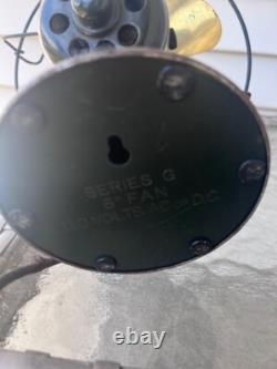 The antique/vintage mini 6 electric fan by General Electric is a charming collectible piece with a black brass finish and 4 blades. This single-speed fan, from the General Electric Series G, stands at 10 inches tall and is powered electrically.