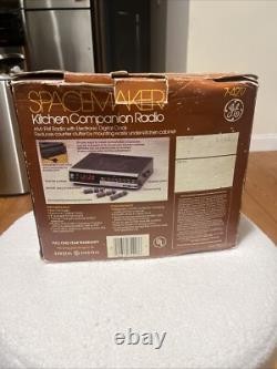 The GE Spacemaker Kitchen Companion is a vintage clock radio designed for the kitchen. The model number is 7-4217A and it comes complete in its original packaging. Box has some noticeable wear from storage over the years. Unit comes complete with original paperwork & installation materials. Fully Tested in perfect working condition. Unit has some dust & minor wear & tear from prior use, but is overall in very nice condition for its age.