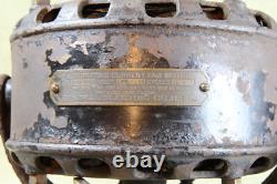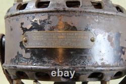 GENERAL ELECTRIC PANCAKE FAN 1901 FOR RESTORE MISSING CAGE AND BLAD NOT TESTED. Motor turns by hand, Nice restoration project. Trunnion Mount with oscillation parts. Geared shafts in the oscillation housing turn freely. Has some rust along the bottom.