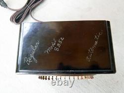 This rare vintage General Electric International household timer clock, model 8B52, is a must-have for any collector. Made of Bakelite, this electric timer features a classic design that will complement any kitchen, office or workspace décor. It is an original piece that is in great working condition measuring 5 1/4" wide x 6 1/4" high x 2 1/4 thick, and is sure to be a great addition to your collection. There are original hand signed inscriptions on the top & bottom of the bakelite case designating its various functions see photos. The original cloth cord has been replaced by a period brown cloth cord.