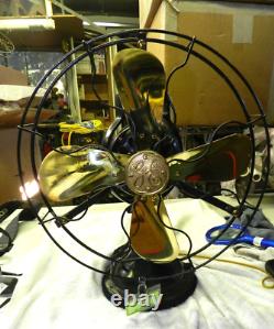 VINTAGE 1920 NICE GENERAL ELECTRIC GE Oscillating Fan 12 brass Blade, ORIGINAL