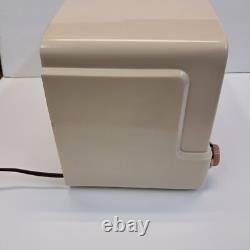 It's in really amazing condition for it's age. I believe this is from the 1940s. General Electric Tube Radio model 115W (I think the W stands for white, there were also dark brown versions of this radio). Thank you for supporting St Vincent De Paul Thrift Stores of Minneapolis / St Paul.