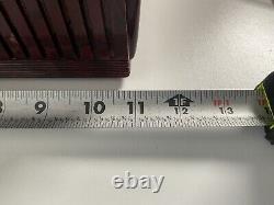 In fair condition for its age. Cosmetic wear and flaws can be seen in the photos. I dusted the interior to the best of my ability. Crevices will likely need more work.