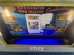 Good looking old GE lighted store display. Wood boxed display with a trio of lights on the inside. Meant to look like an old television. The refrigerator sign is cardboard and slides out if you want to use another sign. 31" across, 20" tall, and 6 deep. Don't see many of these. Please contact me with any questions and check out my other items for sale.