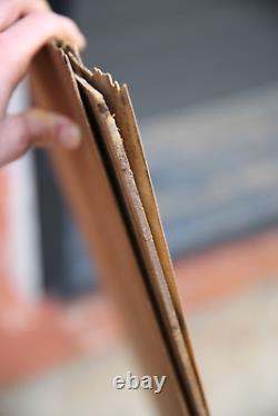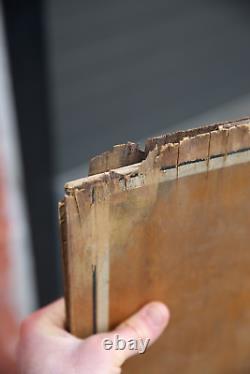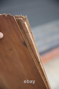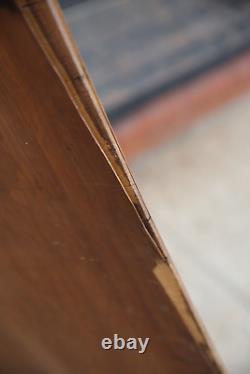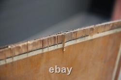 USED VINTAGE CONDITION WITH COSMETIC WEAR FROM AGE. HAS PEELING OF THE VANEER ON BOTH SIDES AS SHOWN WITH SOME WEAR/TARE, CRACKS ALONG EDGES. MEASURES APPROX: 51.5 TALL.