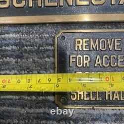 Appear to have been on a large tank as both have a slight curve to them. Large sign is 16x11 and smaller one is 6x3. Come as a matching set.They are in excellent condition as can be seen in photos. Please ask question if you have them and I'd be happy to help.