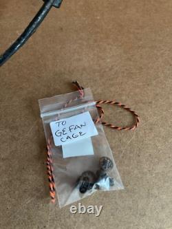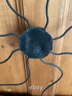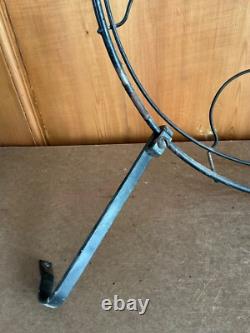 Wire cage is metal (iron) wire, with its original black paint - wear apparent and bends as shown. GENERAL ELECTRIC badge at center of cage is embossed sheet brass, and has its old patina. Intact, original black metal struts/arms (3), with their original metal screws and washers, are included.