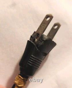 The fan is in working condition, though it is slightly wobbly on startup; however, it runs smoothly once it gets going. The oscillator also seems to function correctly. The most significant issue with this fan is that the cage is bent. The cord appears to be original, but the plug has some plastic chipped out of it and will need to be replaced. If you can straighten the cage, you'll have a fantastic example of this 1934 GE oscillating fan-an excellent addition to any collection or vintage decor setup.