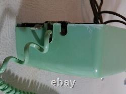 It is a turquoise blue or green color. Shows discoloration on the receiver and cord.